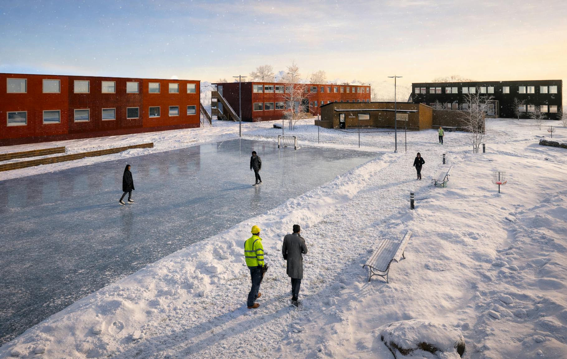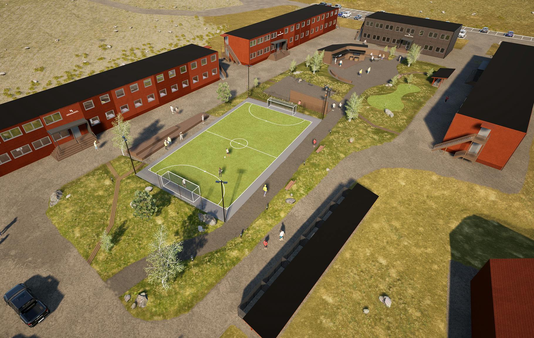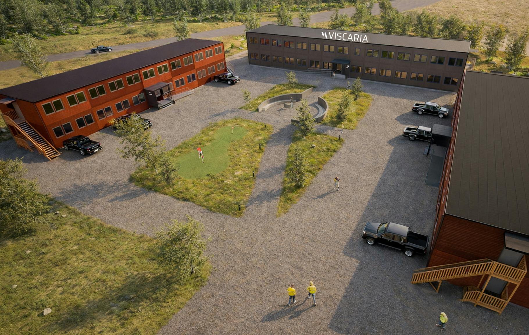 För att minska områdets storskalighet grupperades byggnaderna kring gröna, välkomnande gårdar. Gårdsmiljöerna utvecklades i nära samarbete med landskapsarkitekt och erbjuder plats för rekreation, rörelse och återhämtning för både medarbetare och besökare. Den höga gestaltningsambitionen syftar till att skapa en trivsam och socialt hållbar boendemiljö, där Viscaria Village investerar i långsiktig välfärd och en god arbetsmiljö.
