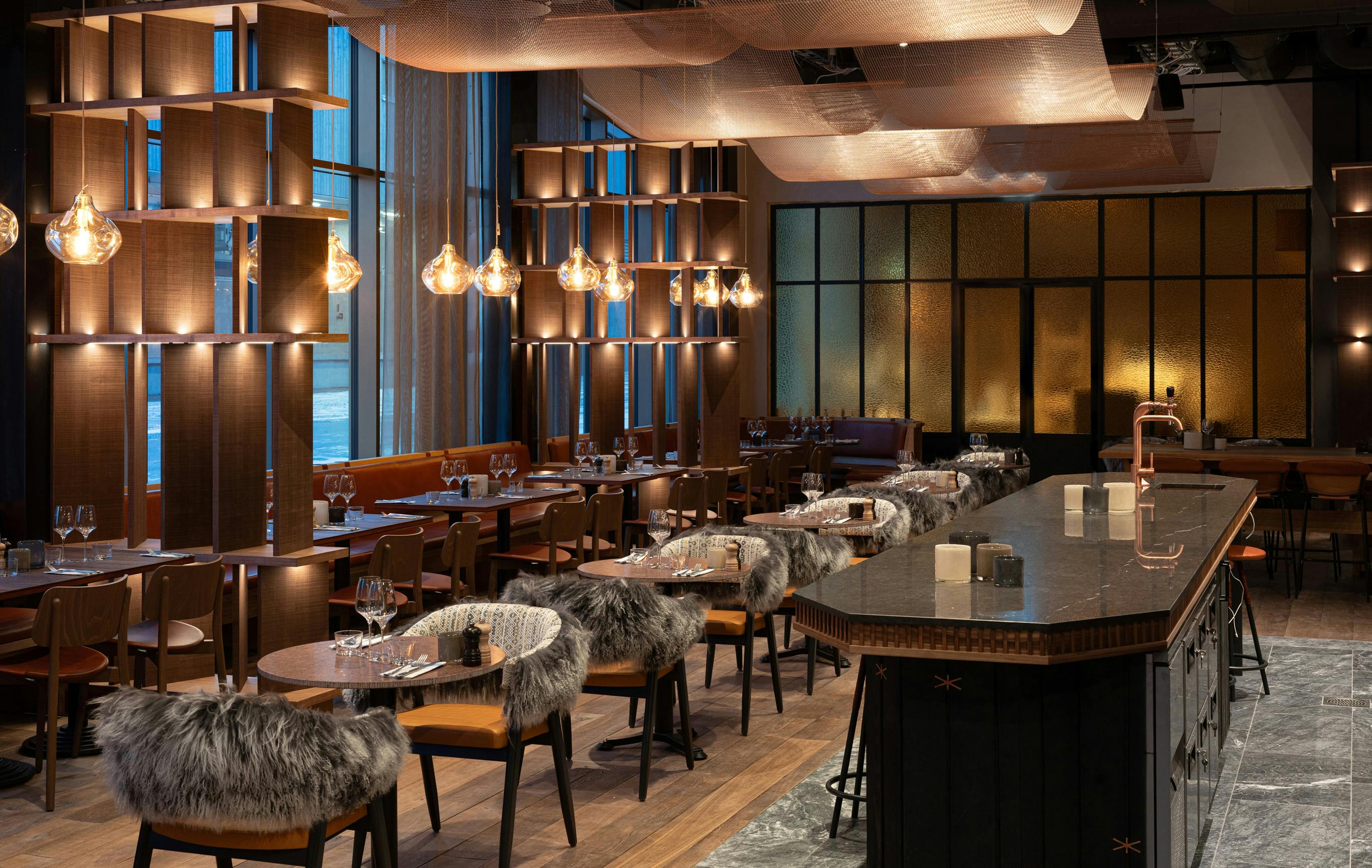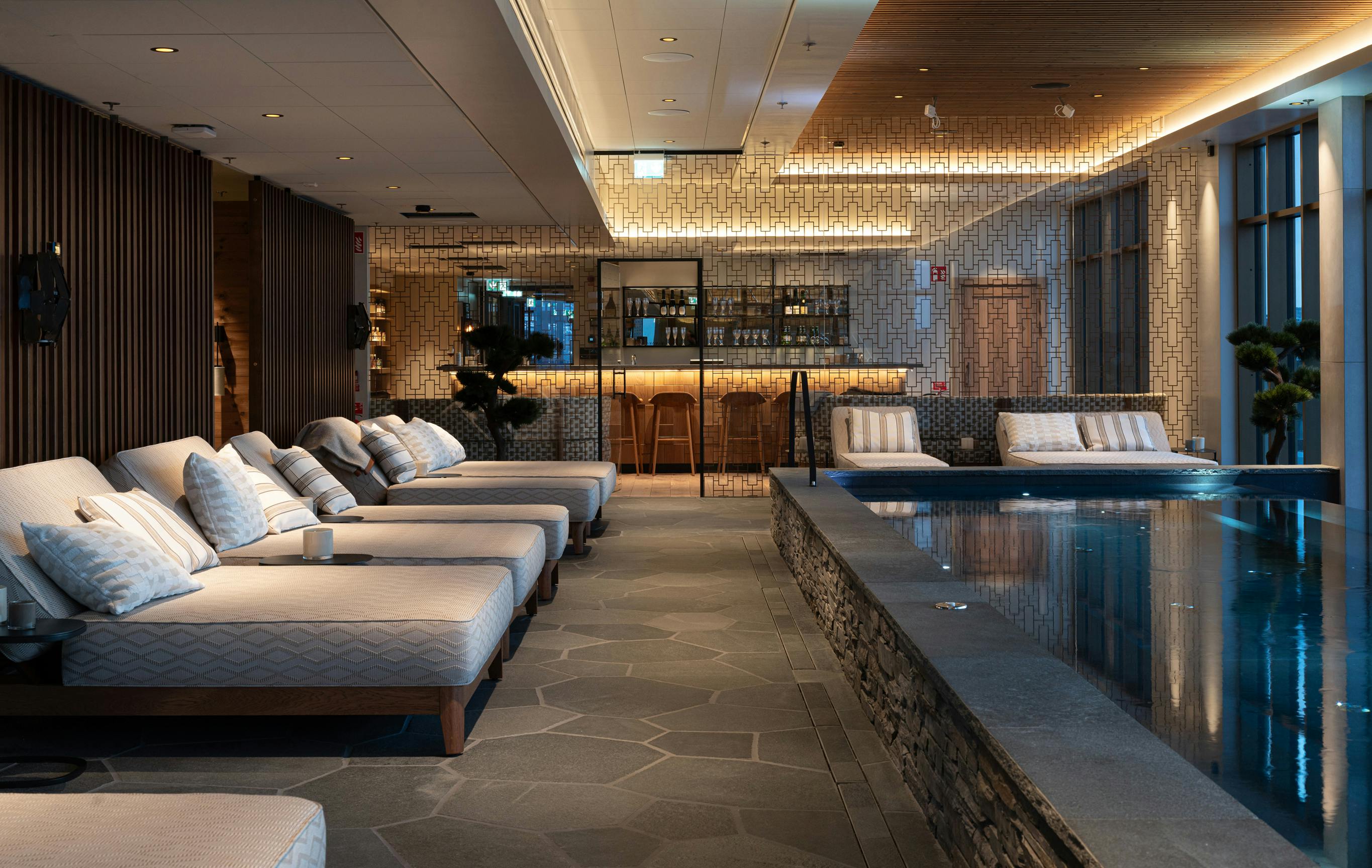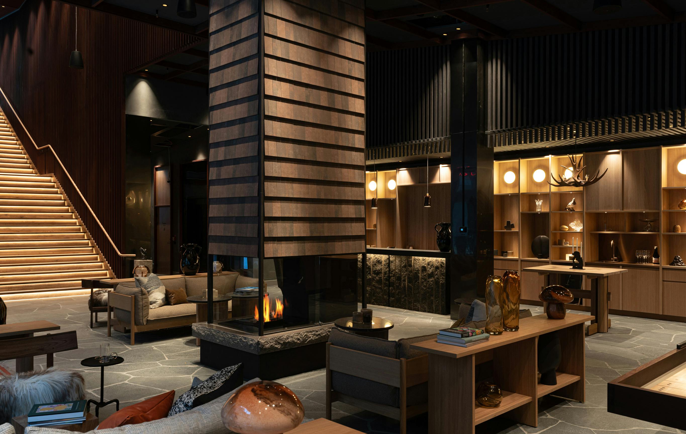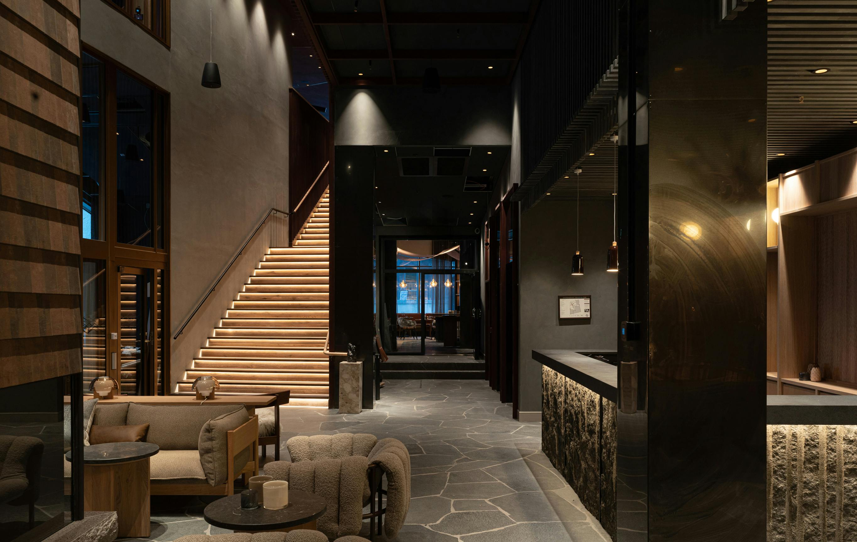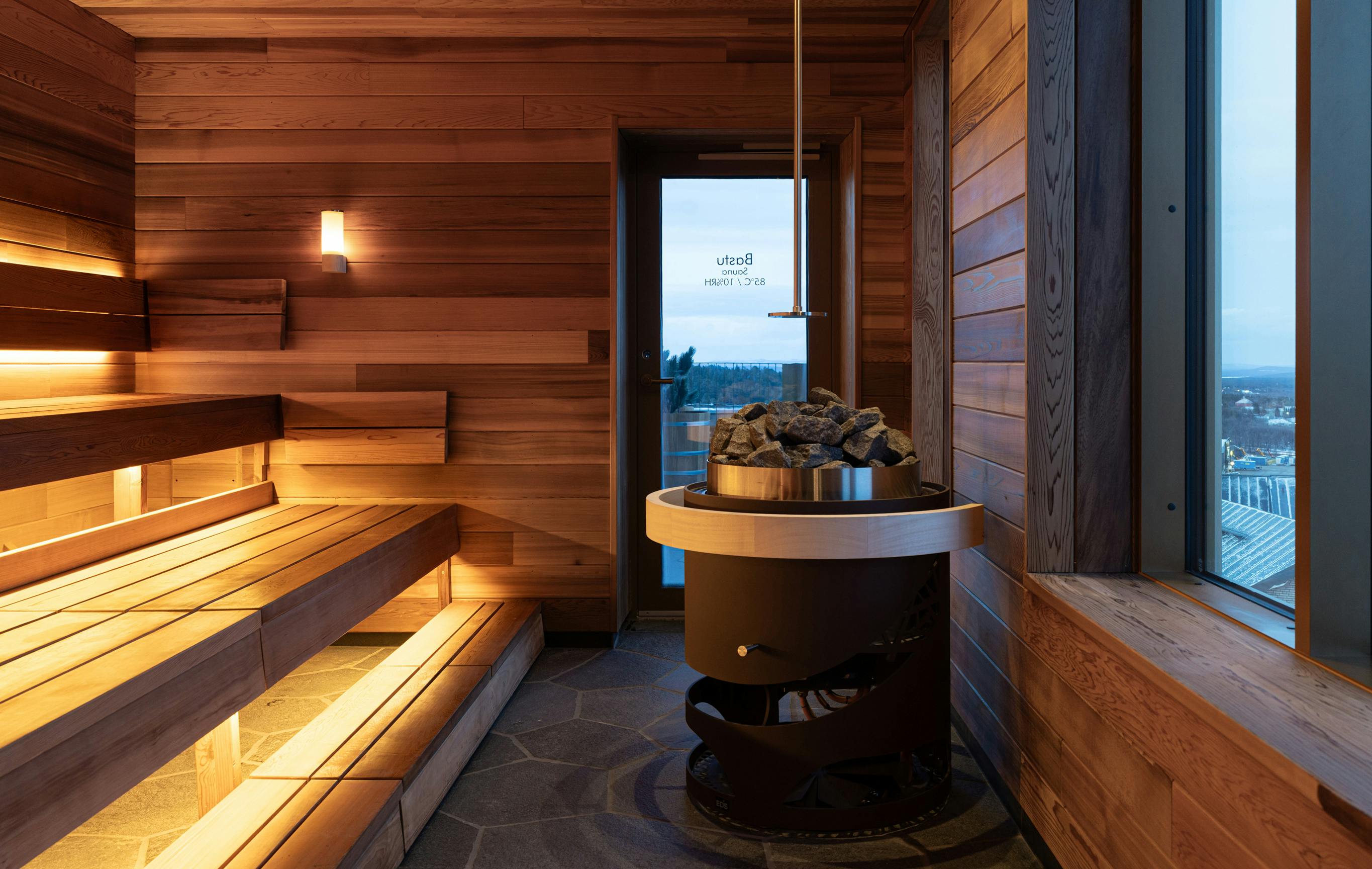 Byggnadens fasad har ett mönster inspirerat av det kringliggande fjällandskapets vyer, med fjäll på olika avstånd i blågröna nyanser. Entréplanet och översta våningen som är de mest publika delarna är generöst uppglasade och utförs i varmare träkulörer och en guldfärgad metall. Från skybar och rooftop spa kan besökaren njuta av Kirunas unika midnattssol och norrsken.